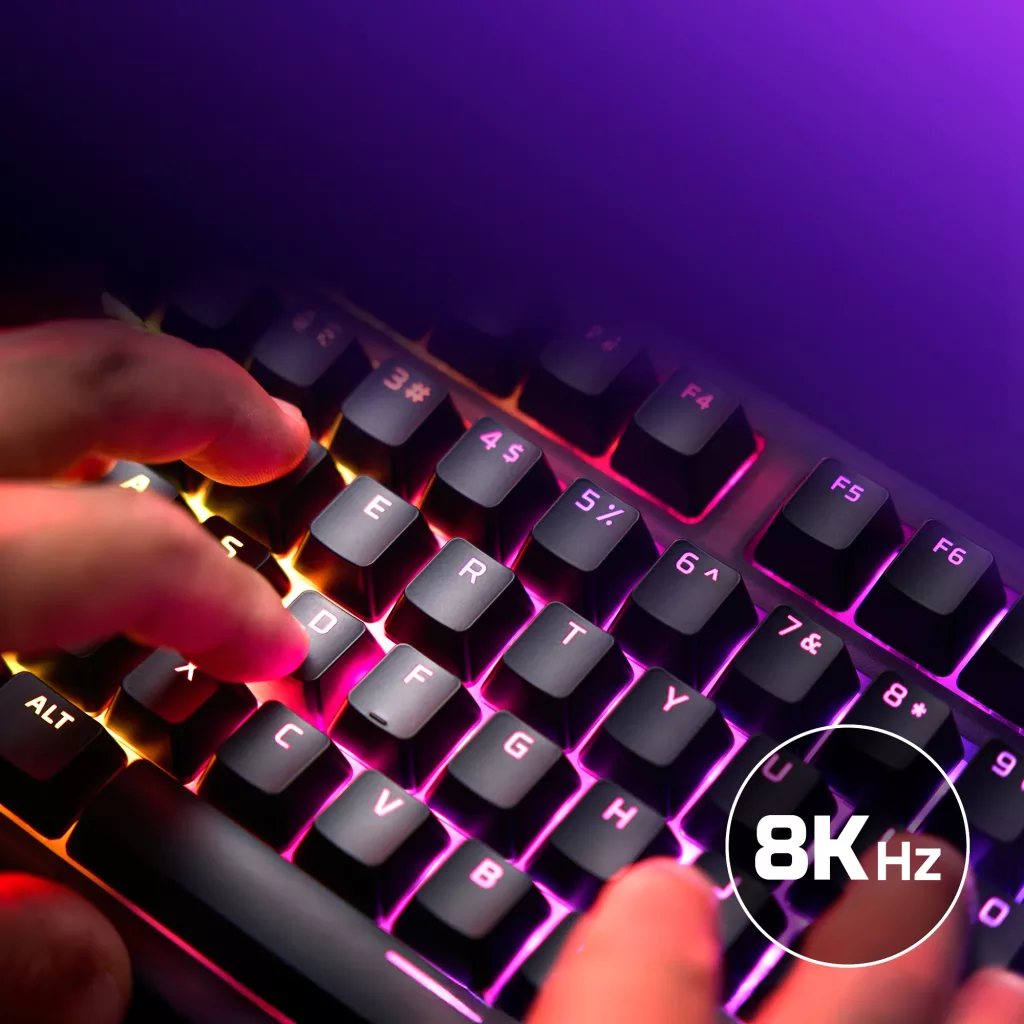 Concrètement, cela signifie que le clavier peut envoyer les informations au PC jusqu’à 8000 fois par seconde.