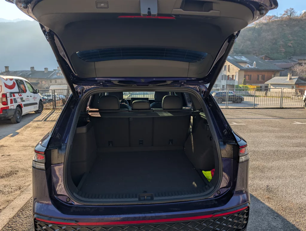 Même en version hybride rechargeable, le Tayron se montre exemplaire côté volume de chargement. Le coffre affiche 705 litres, extensibles à 1 915 litres une fois la banquette rabattue. Les versions thermiques montent jusqu’à 885 litres, voire 2 090 litres banquette couchée. La capacité de traction atteint 2,5 tonnes, un chiffre très respectable pour le segment.