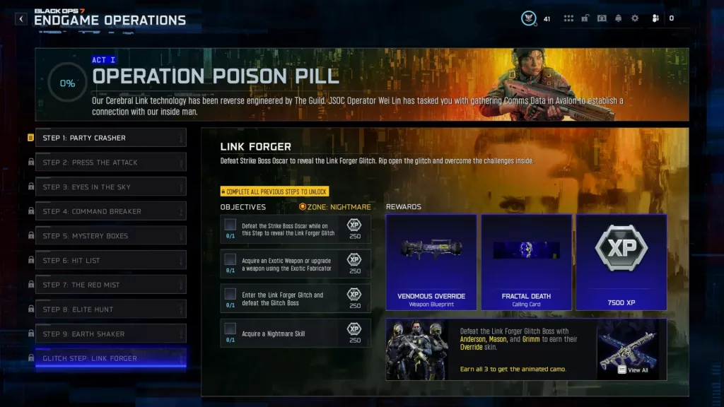 Présentation des opérations : il est temps de se mettre au travail. Des opérations sont déployées sur Avalon pour donner un cadre tactique à vos actions, à commencer par l’Opération Poison Pill.