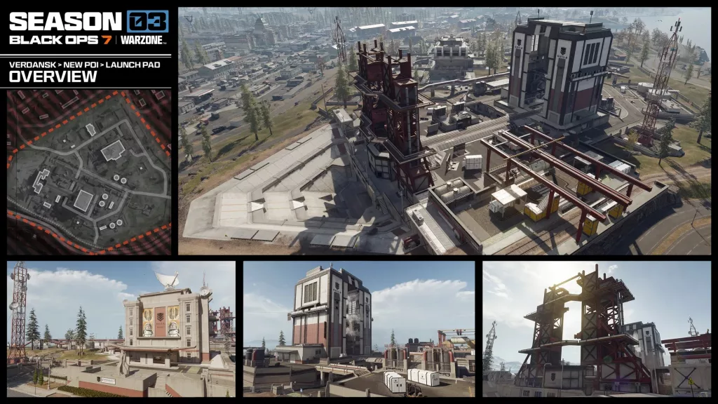 Mise à jour de la carte de Verdansk : les collines au sud de Verdansk ont fait l’objet d’importants travaux de construction, avec l’arrivée de la toute nouvelle rampe de lancement. Découvrez en avant-première les principales zones de ce nouveau point d’intérêt gigantesque afin d’être prêt à l’action dès qu’il deviendra un point de largage incontournable au lancement de la saison 3.