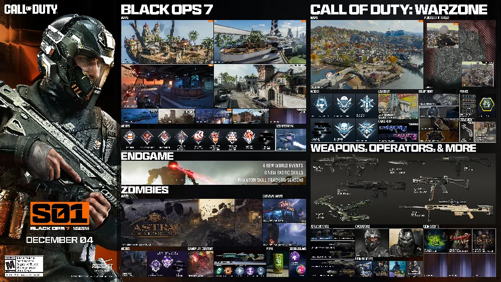 Au programme : plus de 6 cartes multijoueur, 7 nouvelles armes et 3 nouvelles aires de jeu pour le mode Zombies ainsi que du contenu inédit pour la Phase finale de la campagne. Rendez-vous dès le jeudi 4 décembre à 18h (heure de Paris) pour profiter de tout ce que la saison 1 a à offrir.