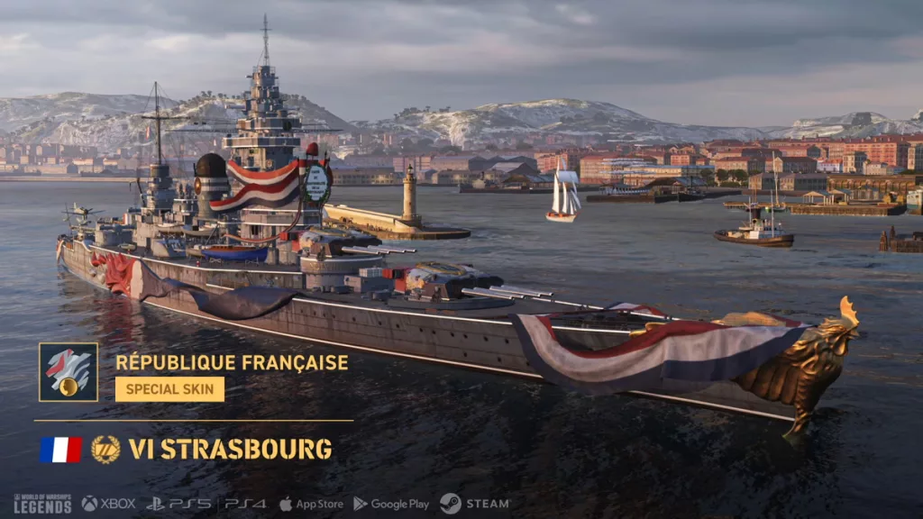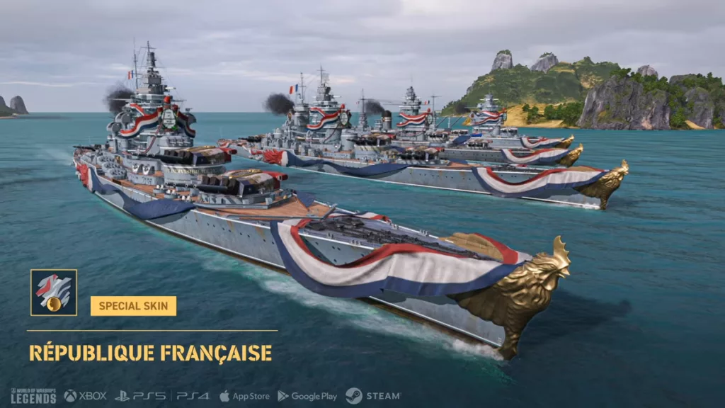 Un nouvel événement de la Marine française fait sensation en haute mer avec des récompenses thématiques, dont des caisses spéciales de cuirassés français. Ces caisses contiennent des apparences pour les cuirassés français Normandie, Lyon, Richelieu, Alsace, Bourgogne, Strasbourg et Flandre, ainsi qu’une chance d’obtenir les cuirassés premium Strasbourg ou Flandre. Les caisses peuvent également être obtenues via le nouveau calendrier Gardien de la Liberté, qui, une fois complété, récompense les joueurs avec l’apparence Marianne pour les commandants français. En plus de ce nouvel événement et du calendrier Gardien de la Liberté, les joueurs les plus audacieux peuvent participer à la mission Mer de Courage pour débloquer le commandant français Charles Bléry.